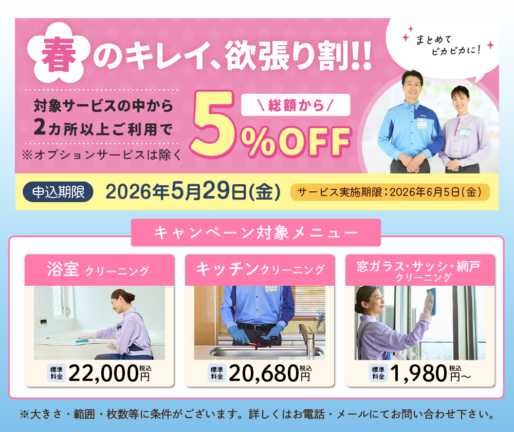 茨城県・栃木県のお家のお掃除は、ダスキンのハウスクリーニングにお任せください。 茨城県・栃木県のお客様に対するお得なキャンペーンを実施している時期もありますので、ハウスクリーニングをお考えの際は、お気軽にダスキンICSまでお問い合わせください。